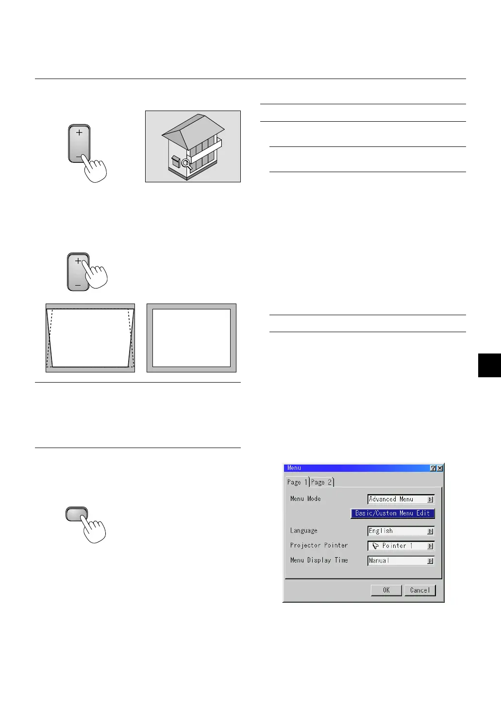 Press (+) or (-) to correct keystone (trapezoidal) distortion to make the