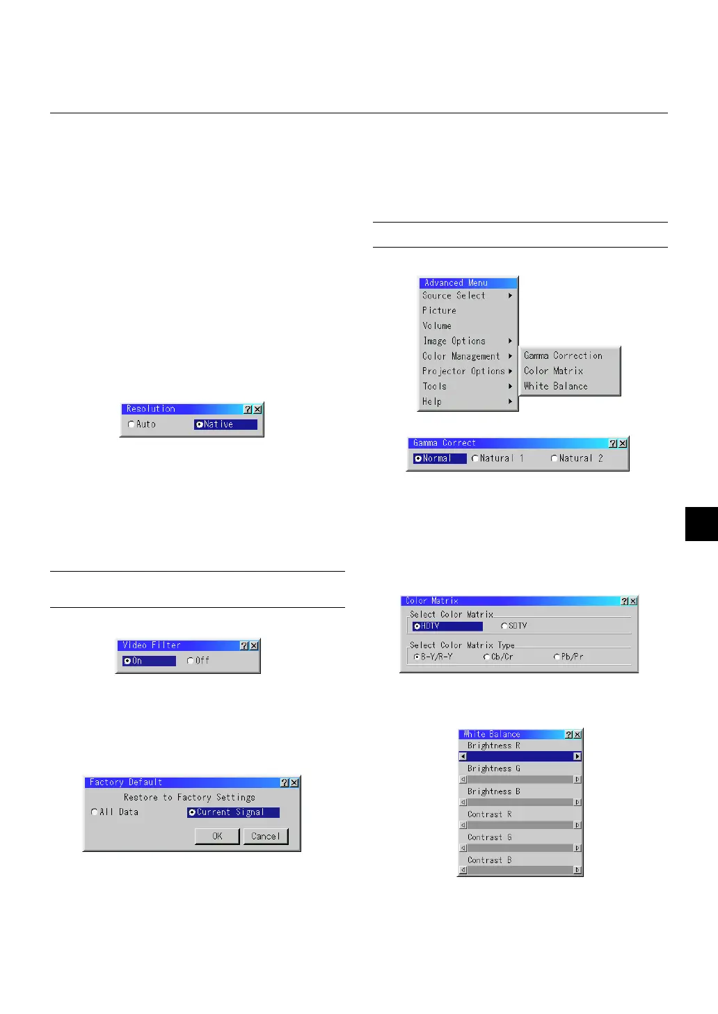 Native........... Turns off the Advanced AccuBlend feature. The projector dis-