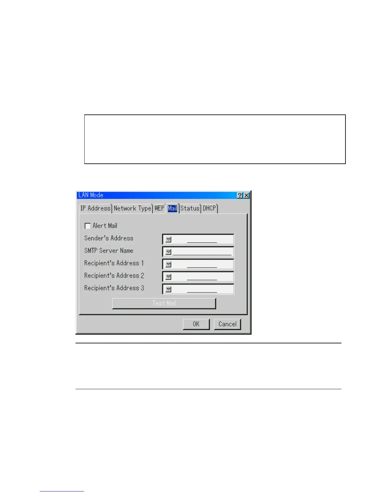 "Test Mail" is available only when there is a LAN card in the PC card slot of the