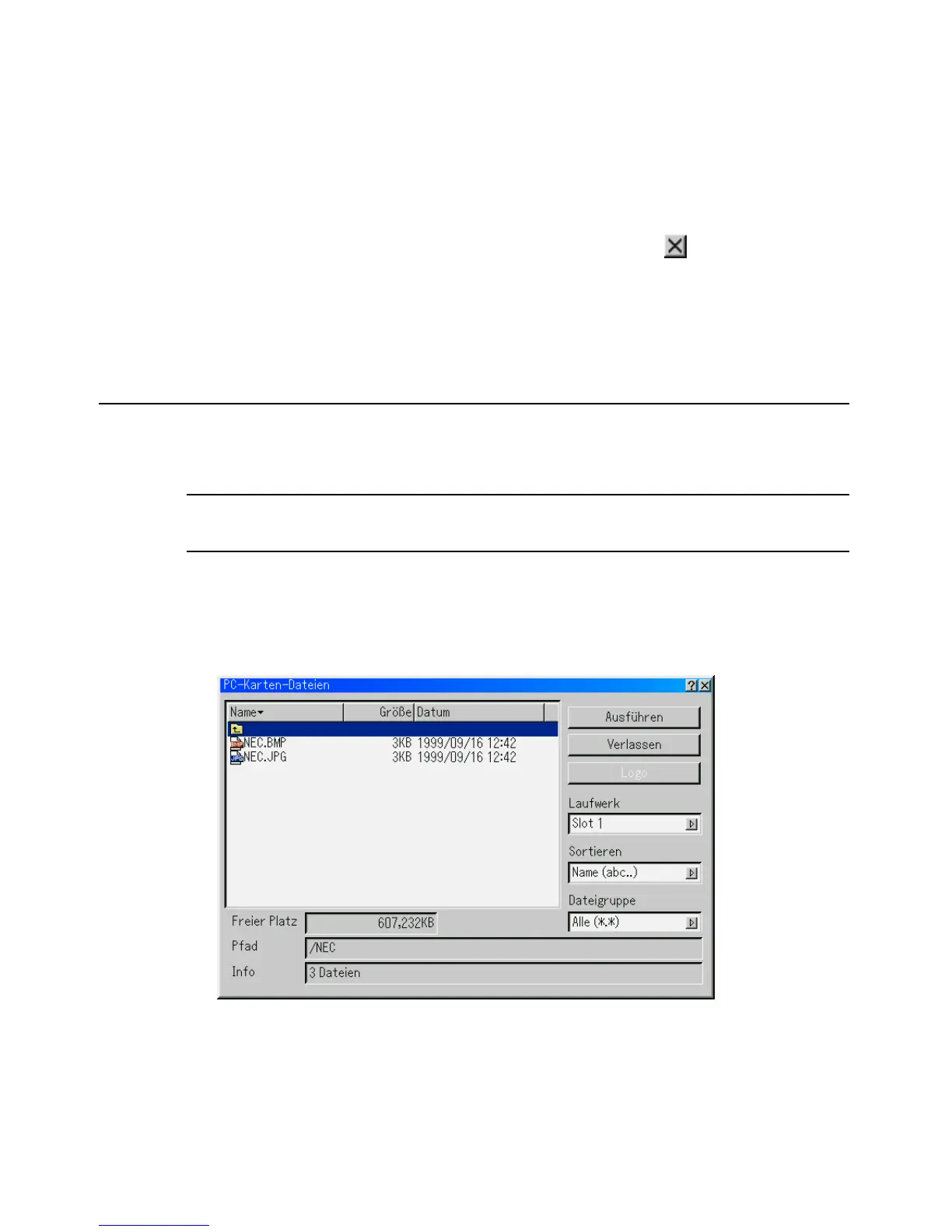 mit allen auf der PC-Karte gespeicherten Dateien anzeigen zu lassen, so
