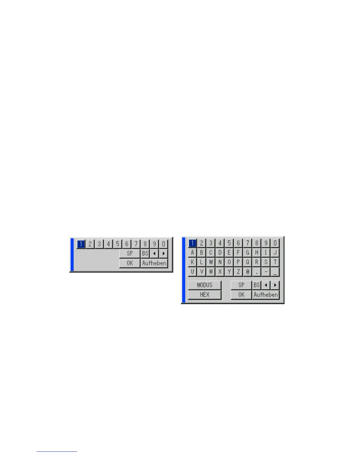 Eingabe von alphanumerischen Zeichen mit Hilfe des Menüs