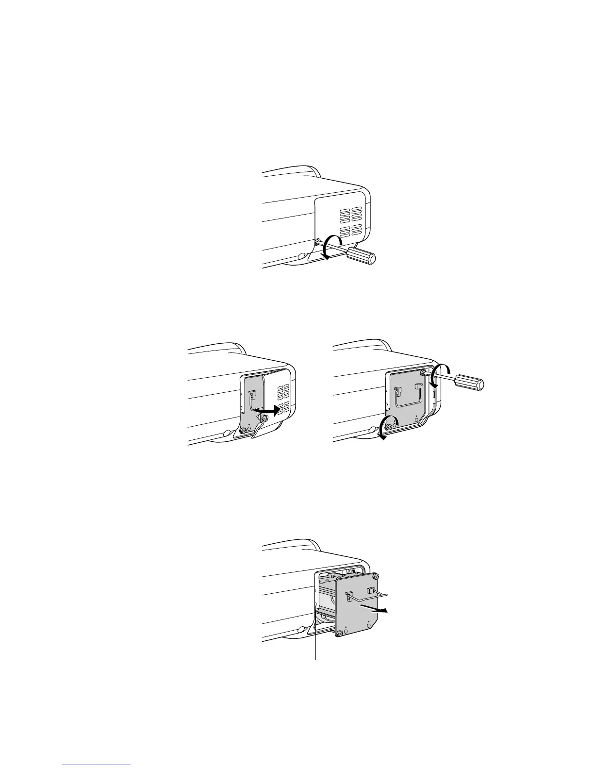2. Desserrer les deux vis fixant le coffret de la lampe jusqu’à ce que le