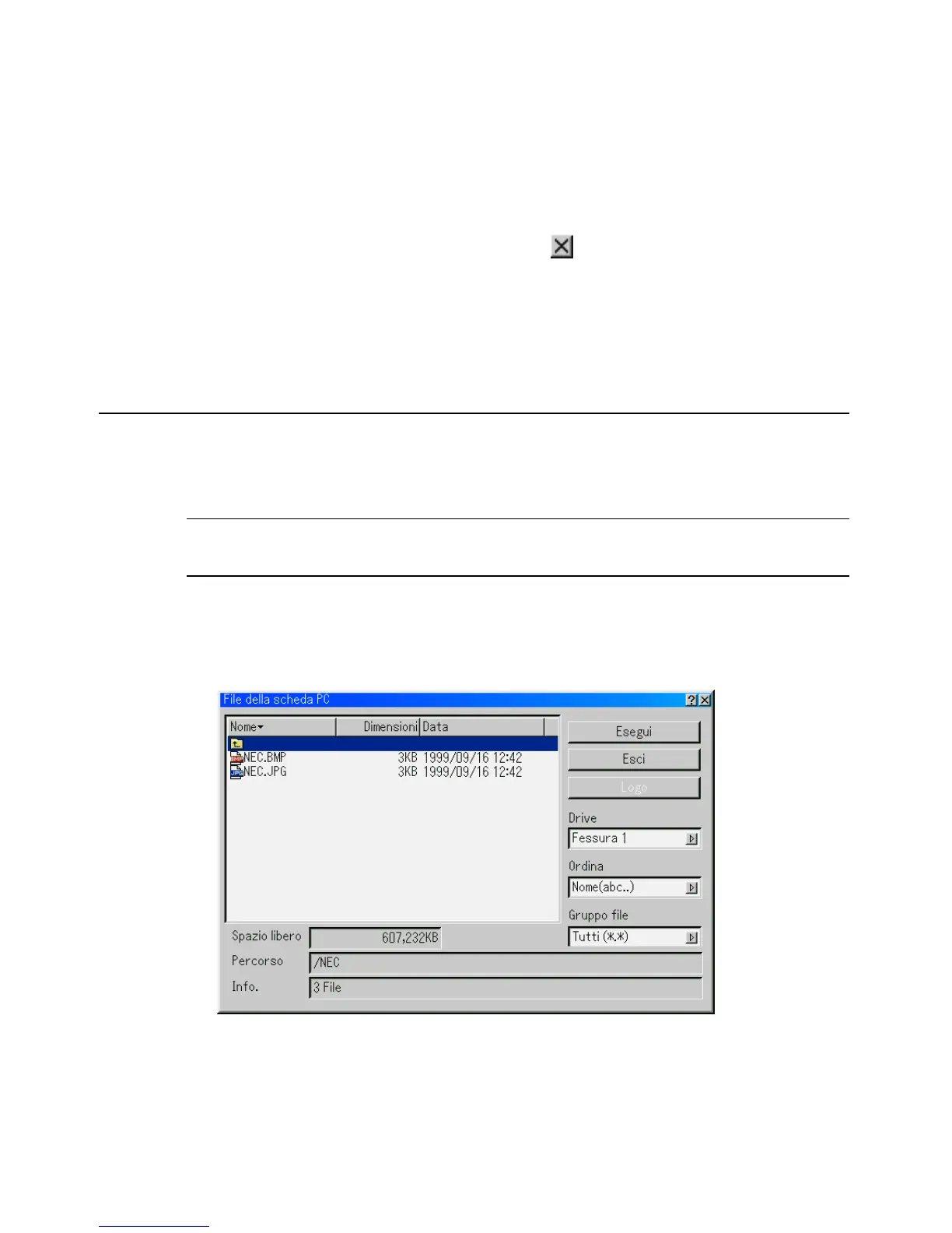 visualizzare una lista di tutti i file memorizzati sulla PC Card per poter