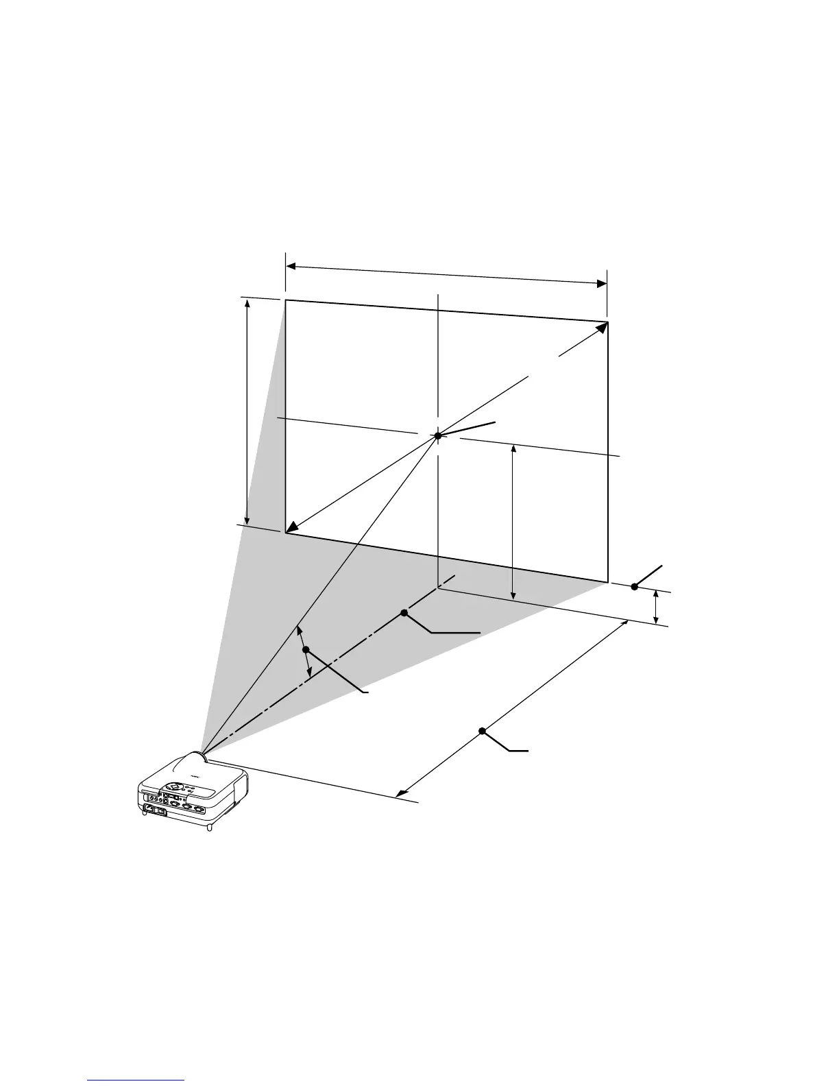 Nedan visas relativa positioner för projektorn och duken. Använd tabellen