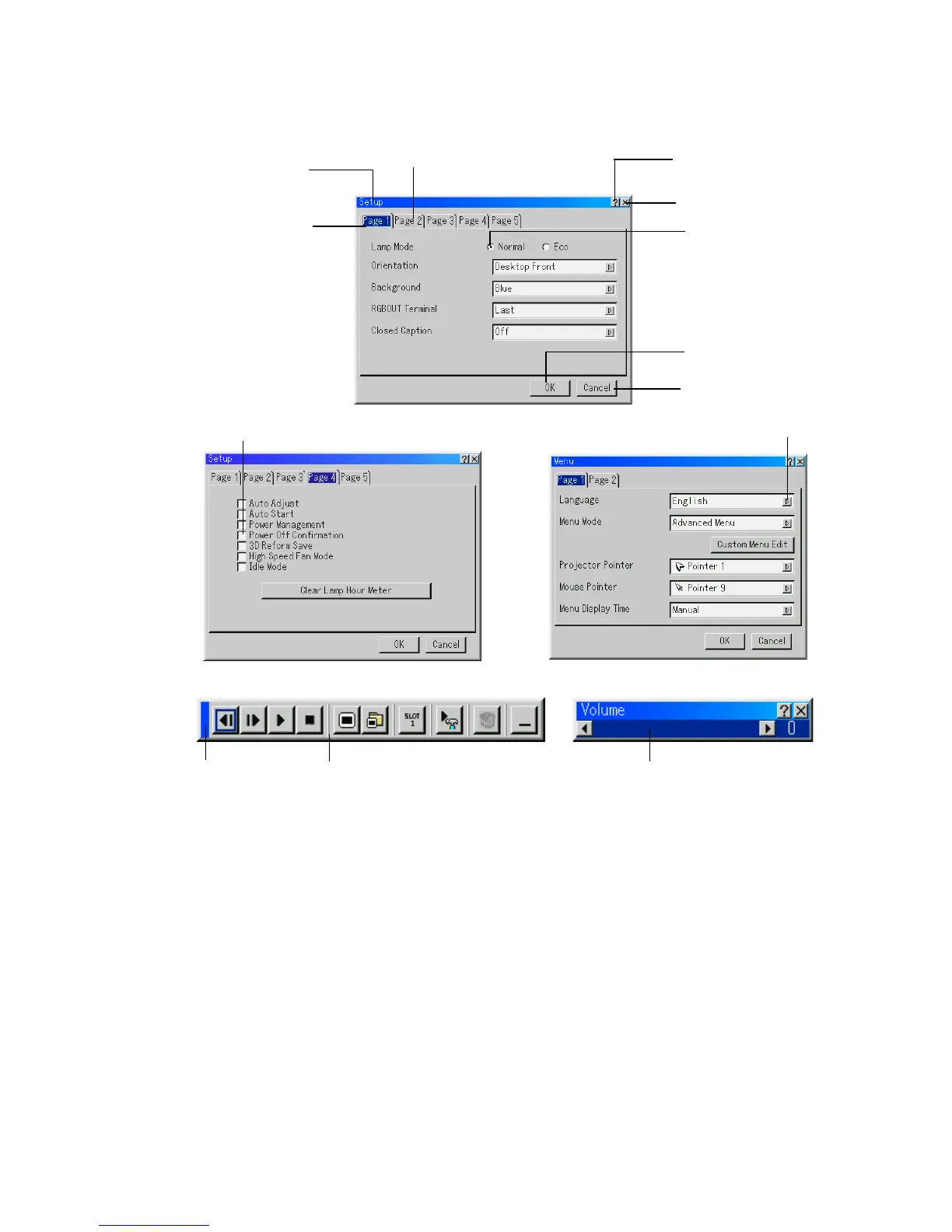 Tab .................. Indicates a group of features in a dialog box. Selecting