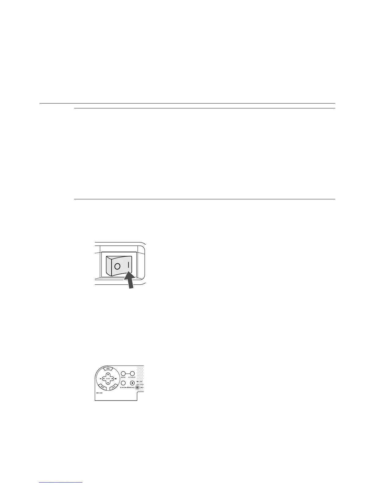 •Projektorn har två strömbrytare: huvudströmbrytare och POWER-tangent
