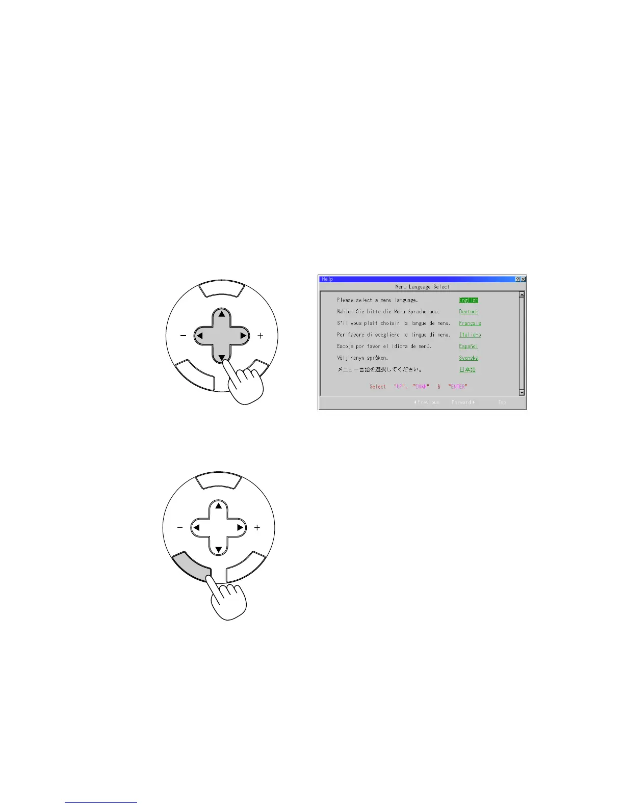 1. Använd SELECT-tangenten eller för att välja ett av de sju språken