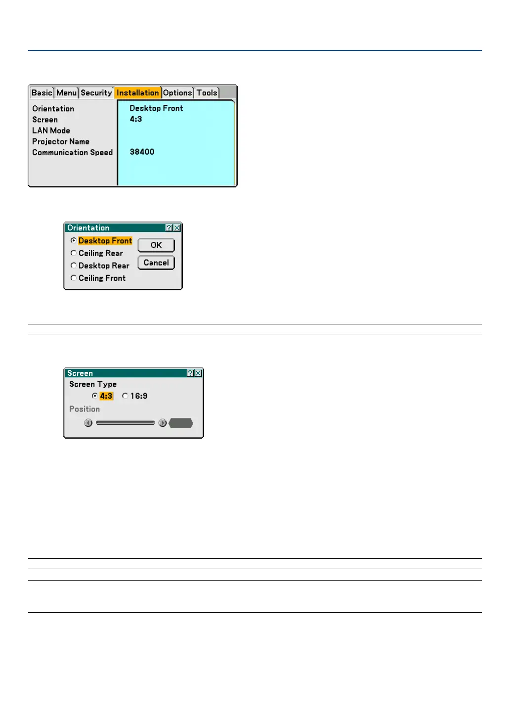 Selecting Projector Orientation [Orientation]