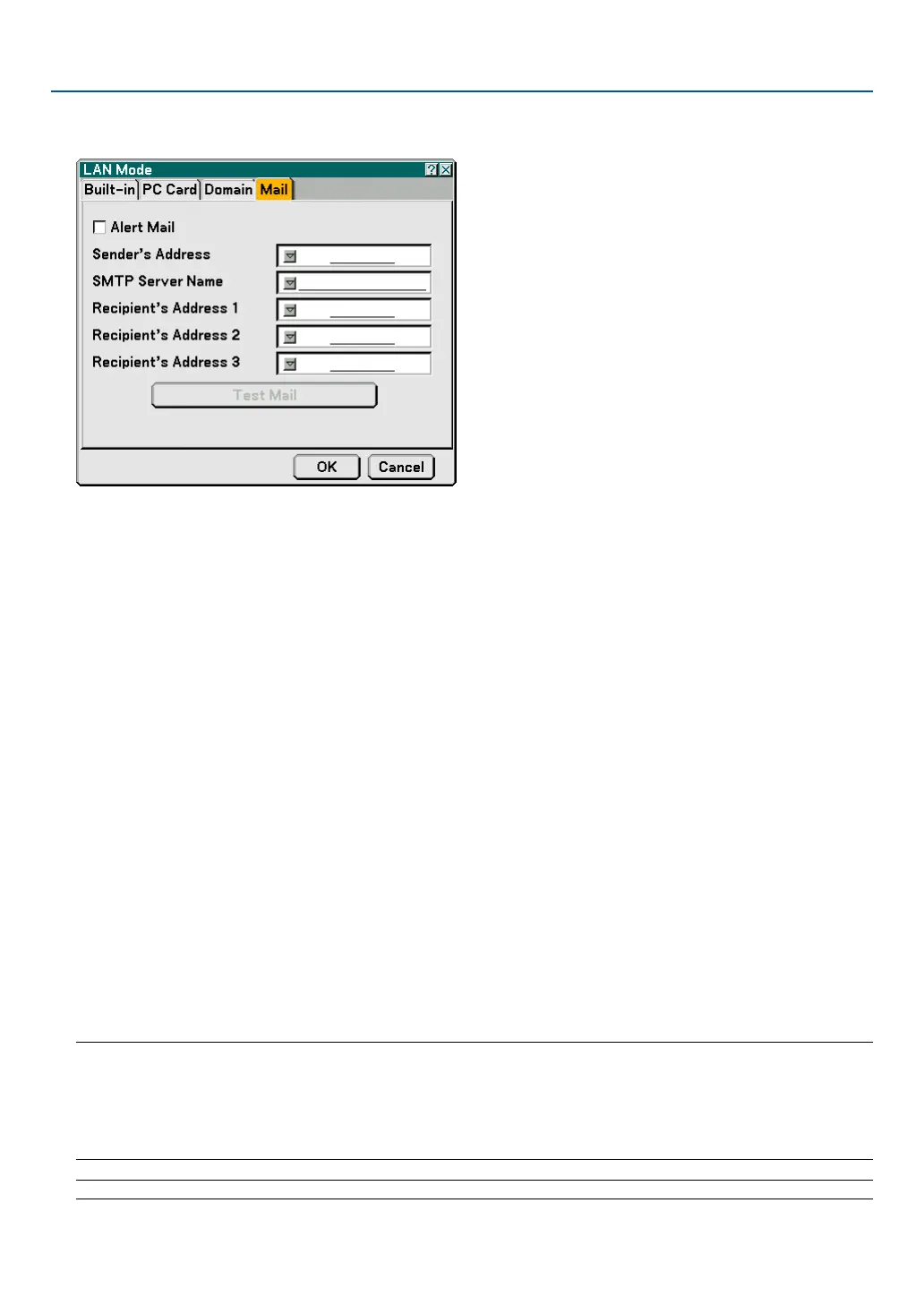 • Unless any one of the "Sender's Address", "SMTP Server's Name" or "Recipient's Address 1-3" is selected, "Test Mail" is not