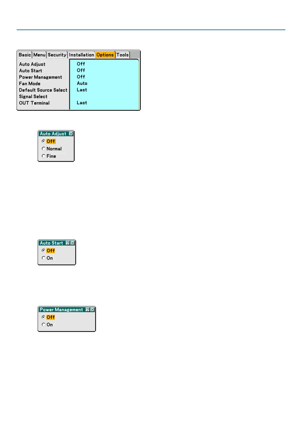 When this option is on and there is no input for five minutes or more, the projector will automatically turn itself off.