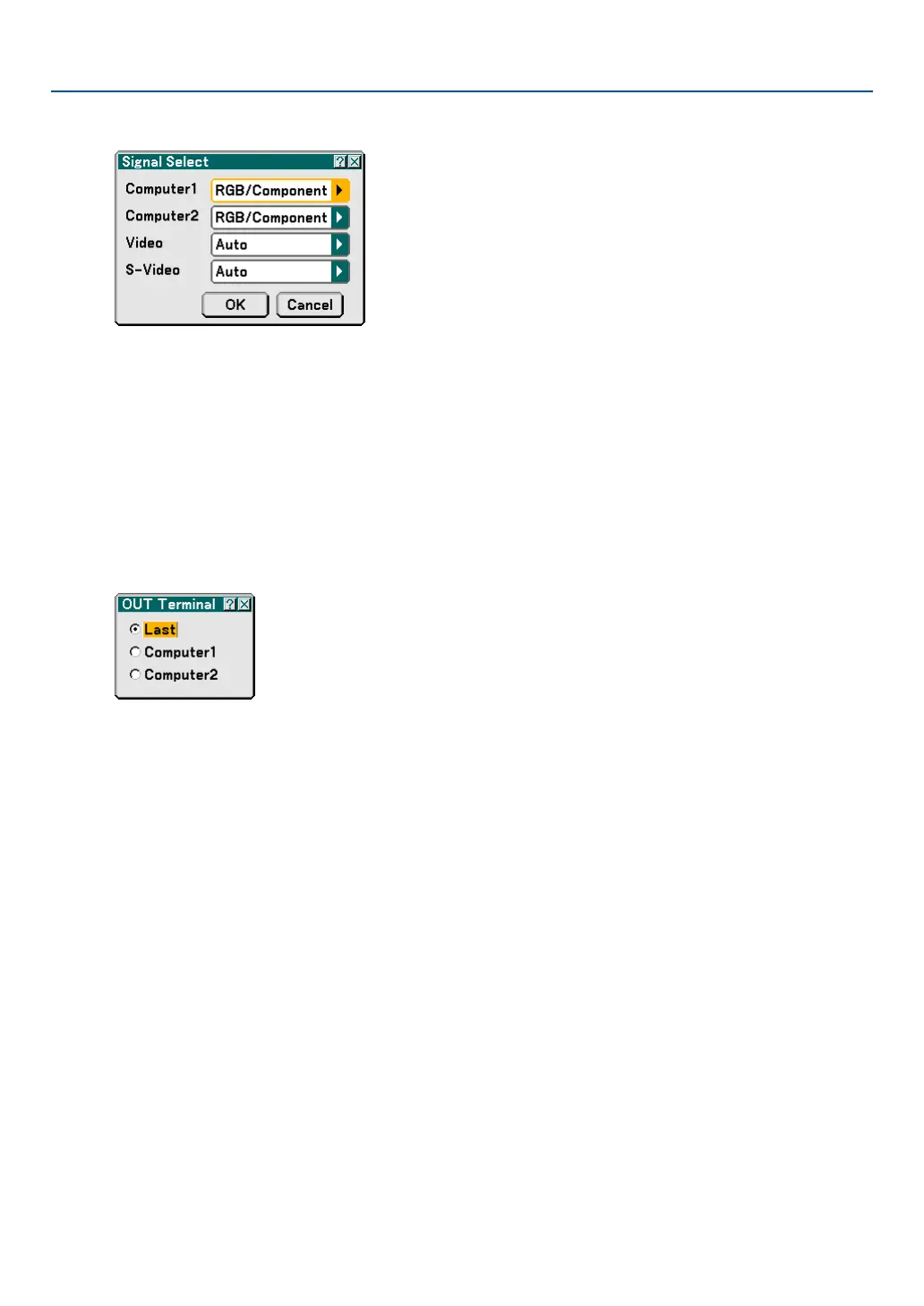 Last ....................... The signal from the last COMPUTER1 or 2 input will be output to the MONITOR OUT connector.