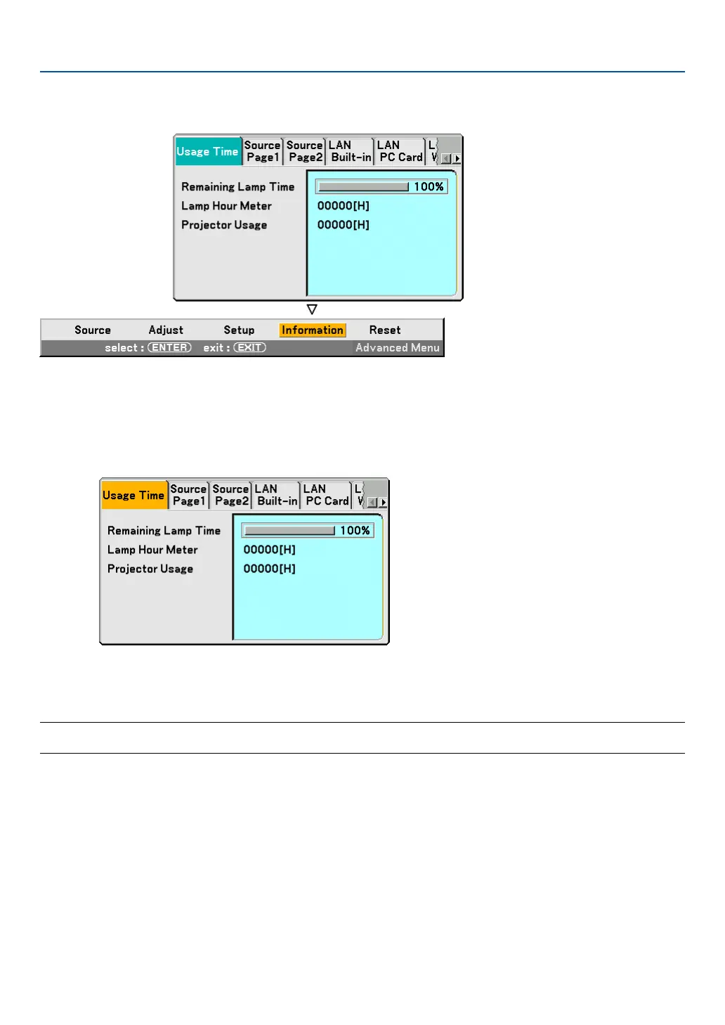 NOTE: The progress indicator shows the percentage of remaining lamp life. The value informs you of the amount of lamp and