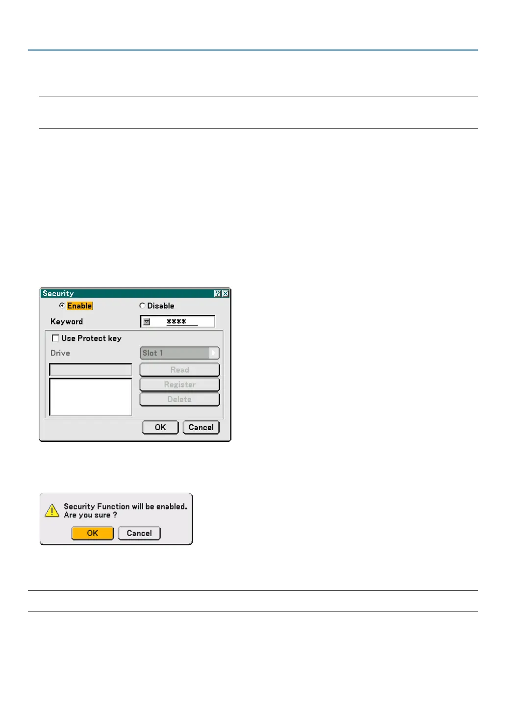 NOTE: A PC card can be used as a protect key. You can skip the keyword entry by inserting a registered PC card when turning on
