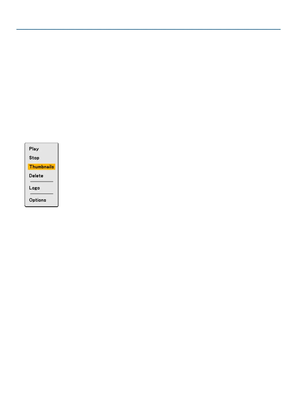 Thumbnails........ Displays a list of thumbnails of Graphic files stored in the PC card inserted into the projector.