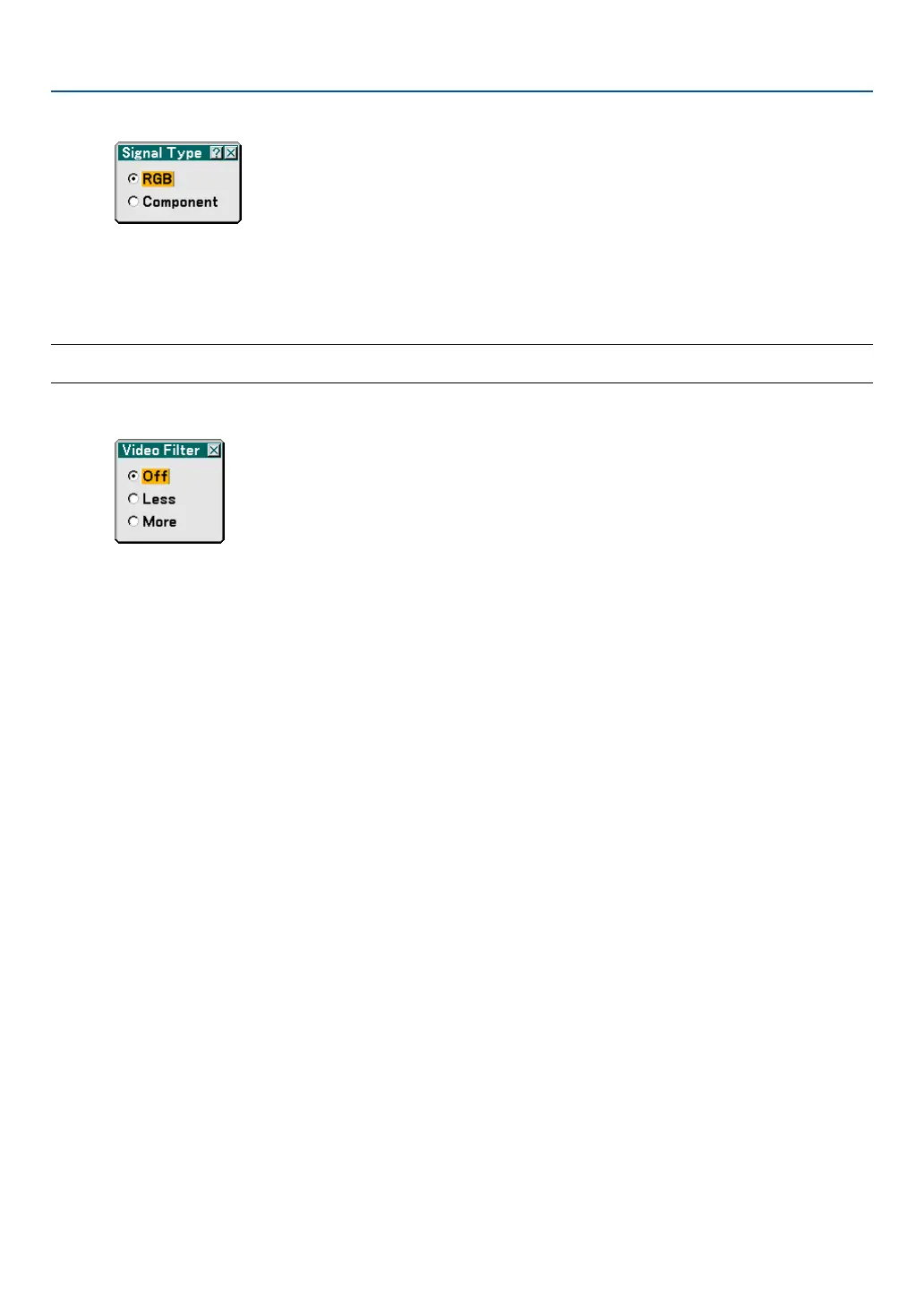 Selecting Video Filter Level [Video Filter] (not available for Video, Viewer and LAN)