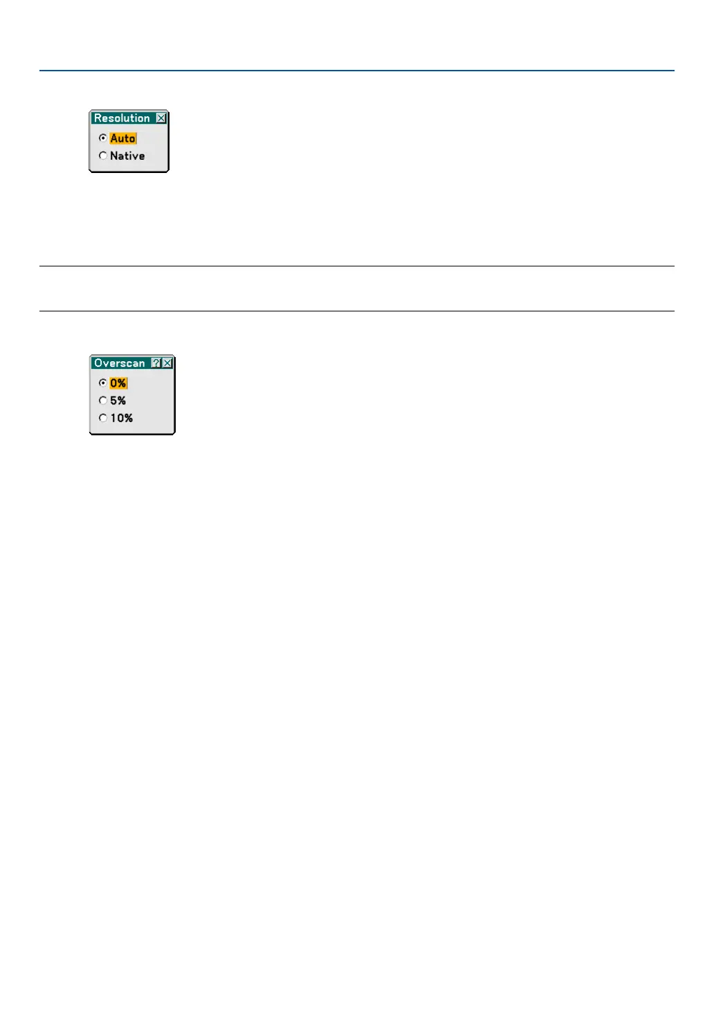 * When "Resolution" is set to "Native", "Overscan", "3D Reform", "Aspect Ratio" and "Screen" are not available.