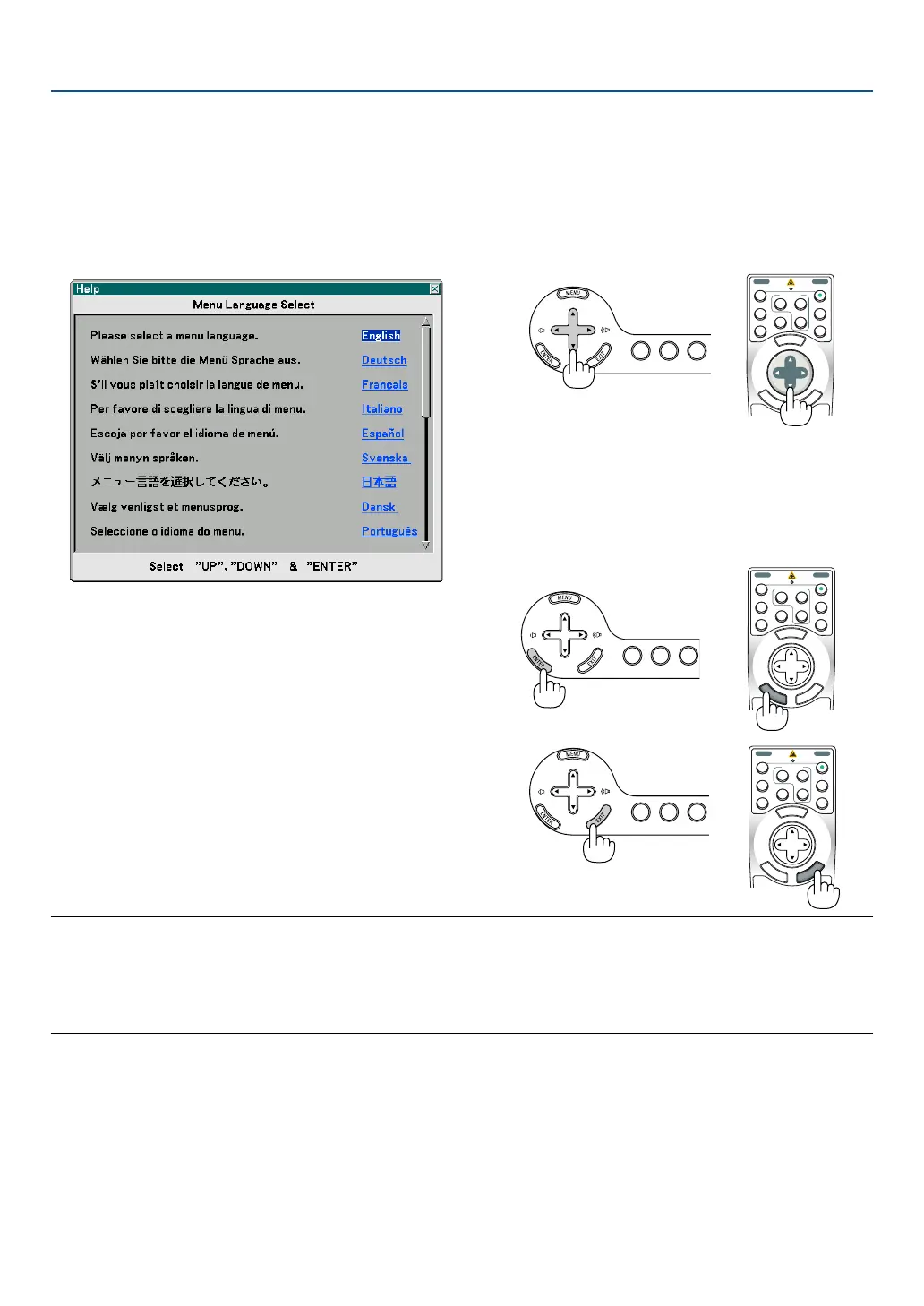 To select a menu language, follow these steps: