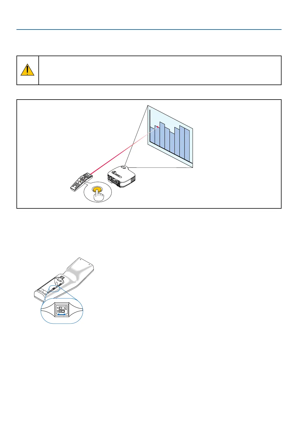 There are two switches on the bottom of the battery case: an applicable projector selector switch (1) and laser enable/