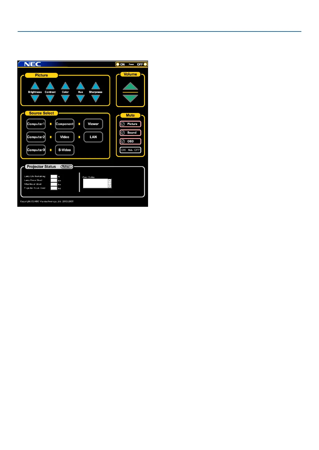 Picture: Controls the video adjustment of the projector.