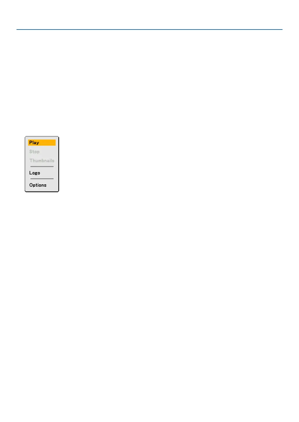 4. Select [Play] and then press the ENTER button to display the first slide or to start playing slides automati-
