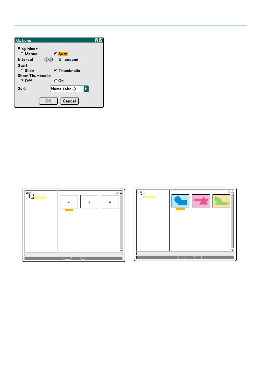 Auto ...................... Plays back slides automatically when the Viewer source is selected.