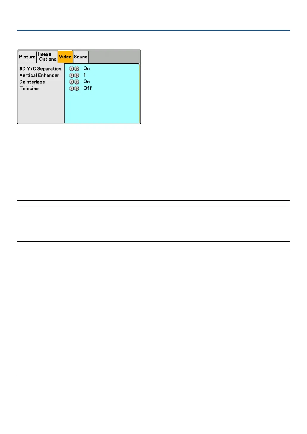 TIP: When the image is poor quality, turn on [3D Y/C Separate]. If there is still poor quality, try turning off [Deinterlace] or try turning
