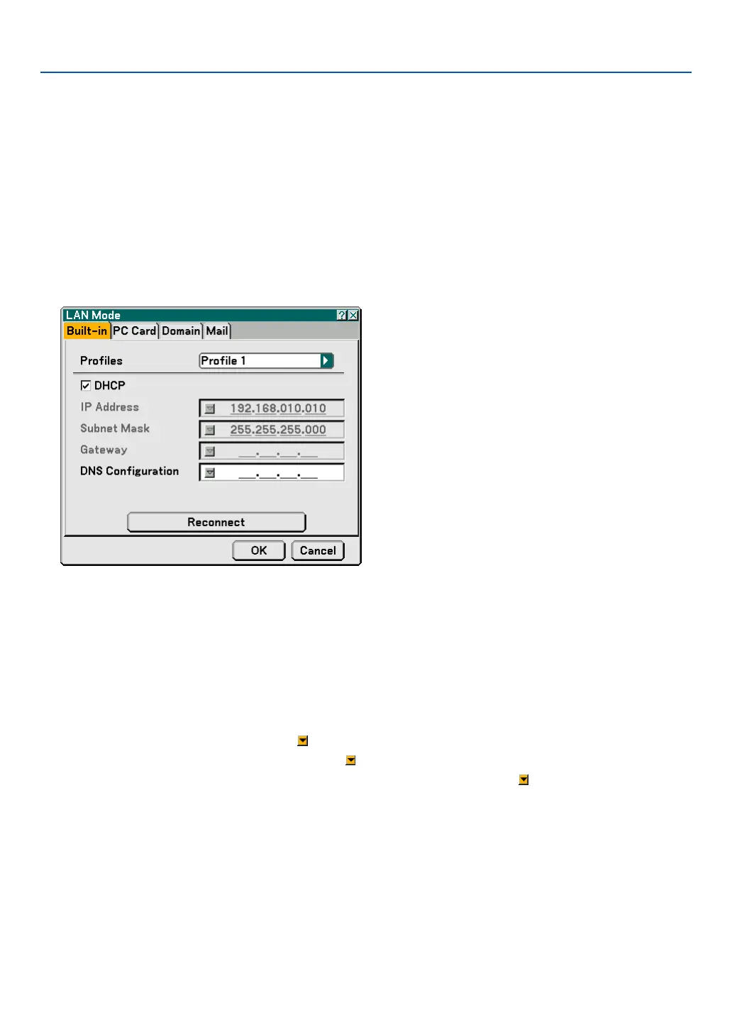 Select [Profile 1] or [Profile 2] and then do settings for [DHCP] and the other options.
