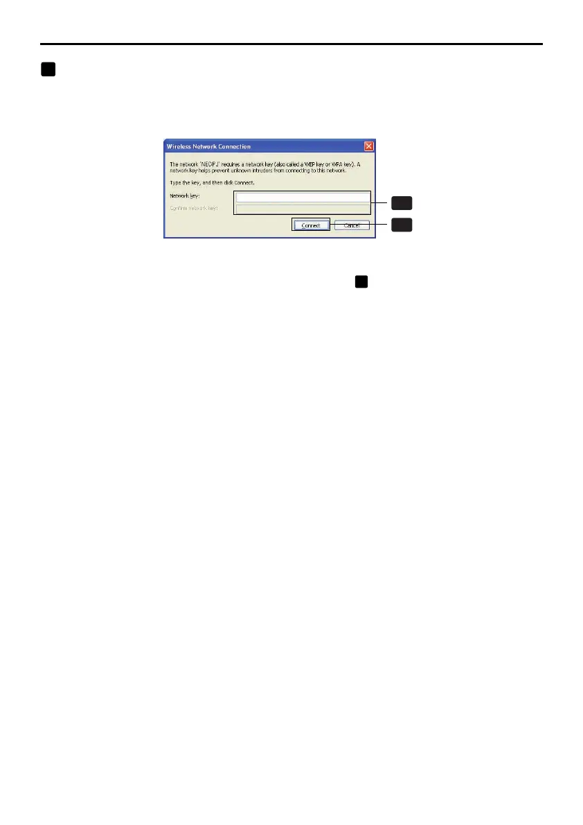 • Input an encrypiton key of “WEP”. Enter “NECVT” in the Network key box, for example, if you have