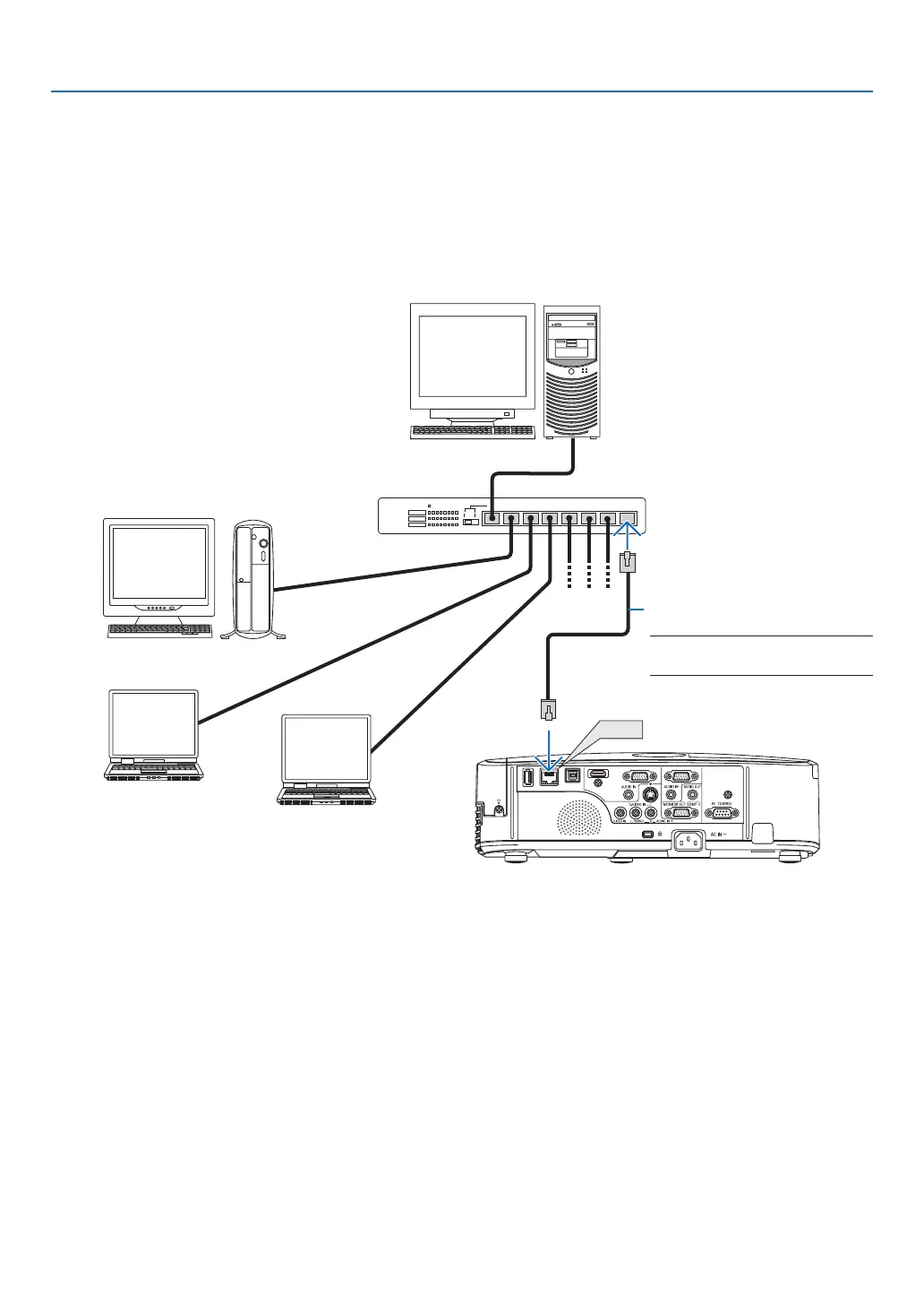 TheprojectorcomesstandardwithaLANport(RJ-45)whichprovidesaLANconnectionusingaLANcable.