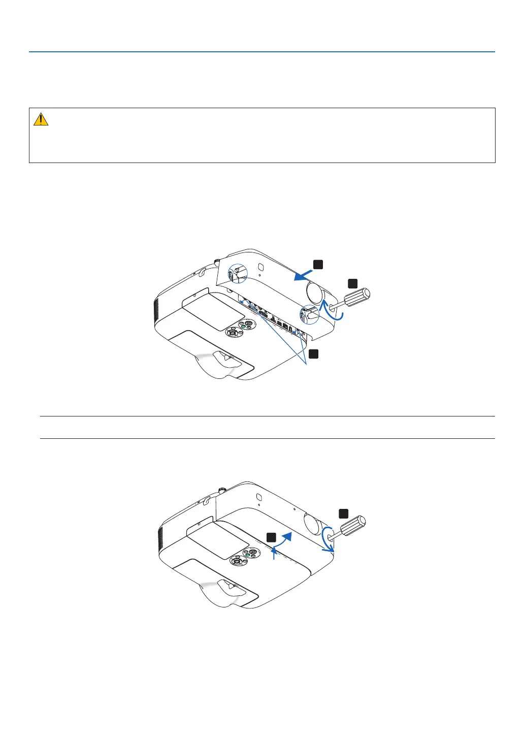 • Becarefulnottogetcablescaughtinbetweenthecablecoverandtheprojector.