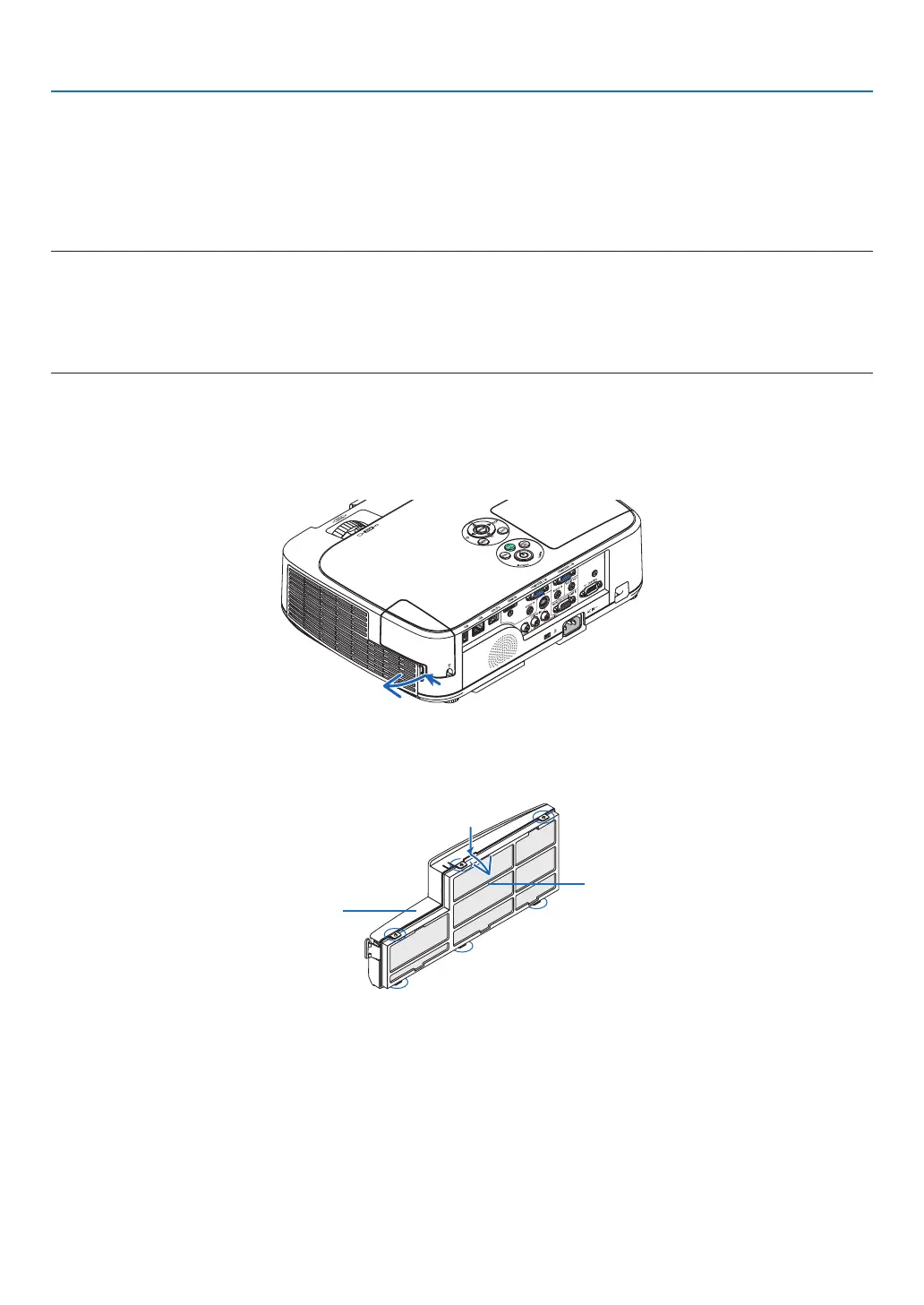 • Beforereplacingthelters,wipeoffdustanddirtfromtheprojectorcabinet.