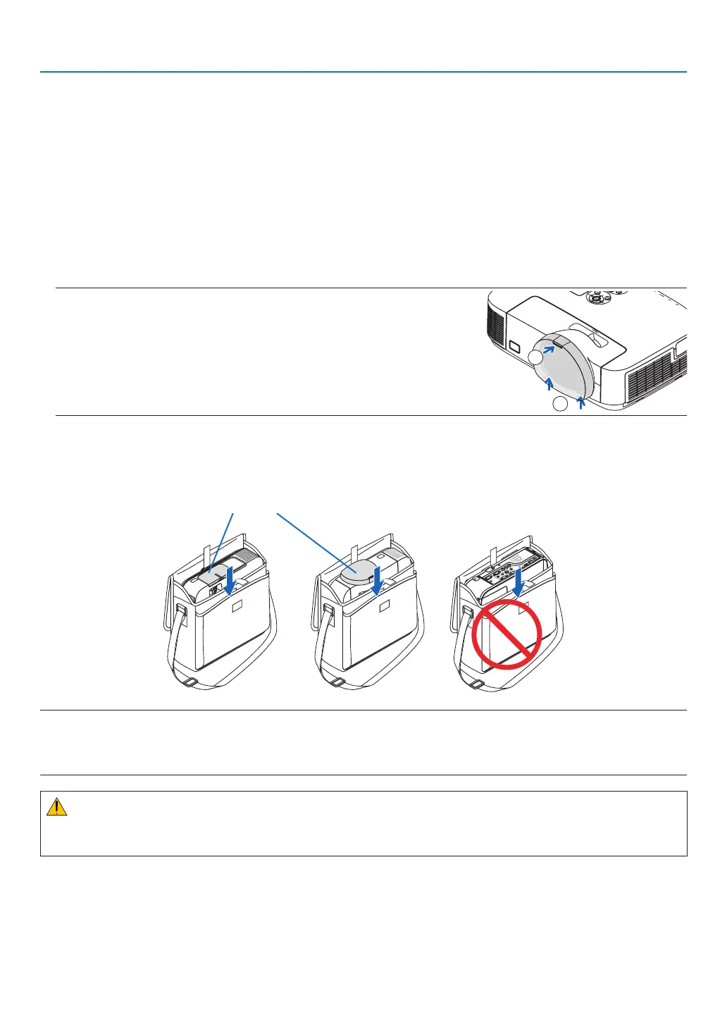 • Whenplacingtheprojectorinthesoftcase,retractthetiltfootandtherearfeet.Failuretodosomaycasedamagetotheprojec-