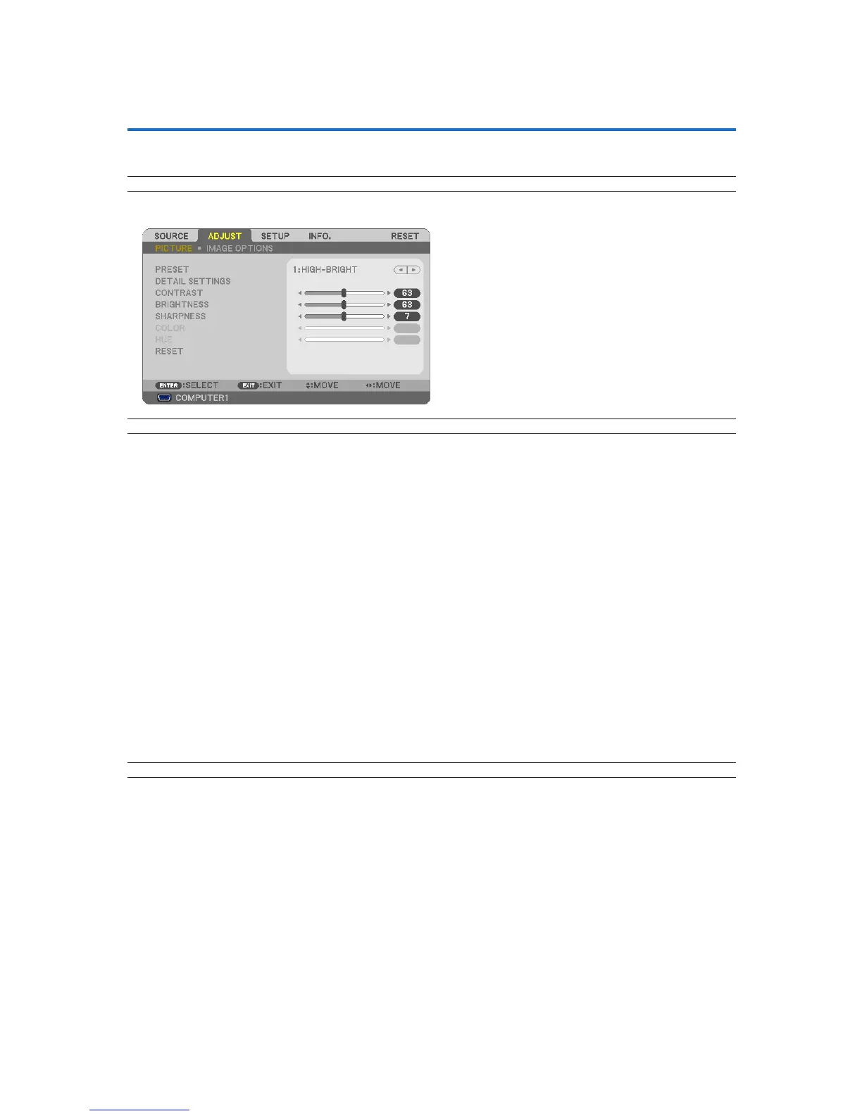 2EPEATSTEPSTOADJUSTANADDITIONALITEMORPRESSTHE%8)4BUTTONONTHEREMOTECONTROLORTHEPROJEC-
