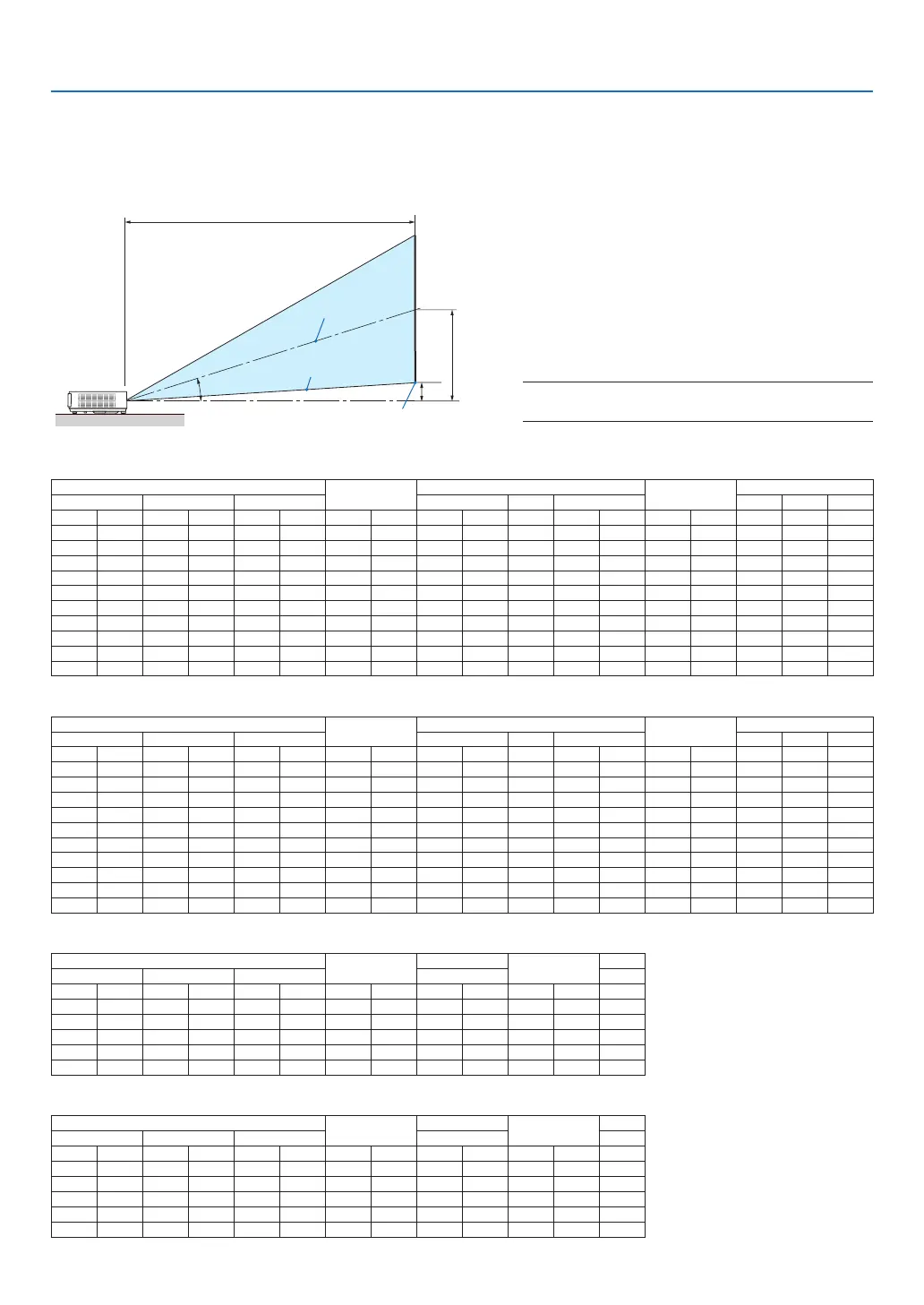 Thefollowingshowstheproperrelativepositionsoftheprojectorandscreen.Refertothetabletodeterminethe