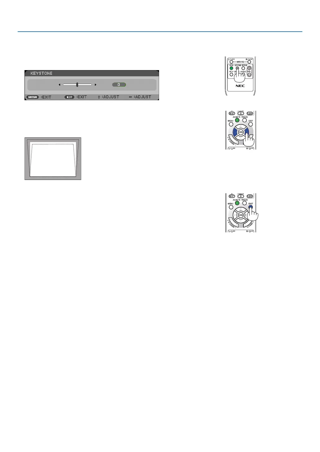 2. Use the ◀ or ▶buttontocorrectthekeystonedistortion.