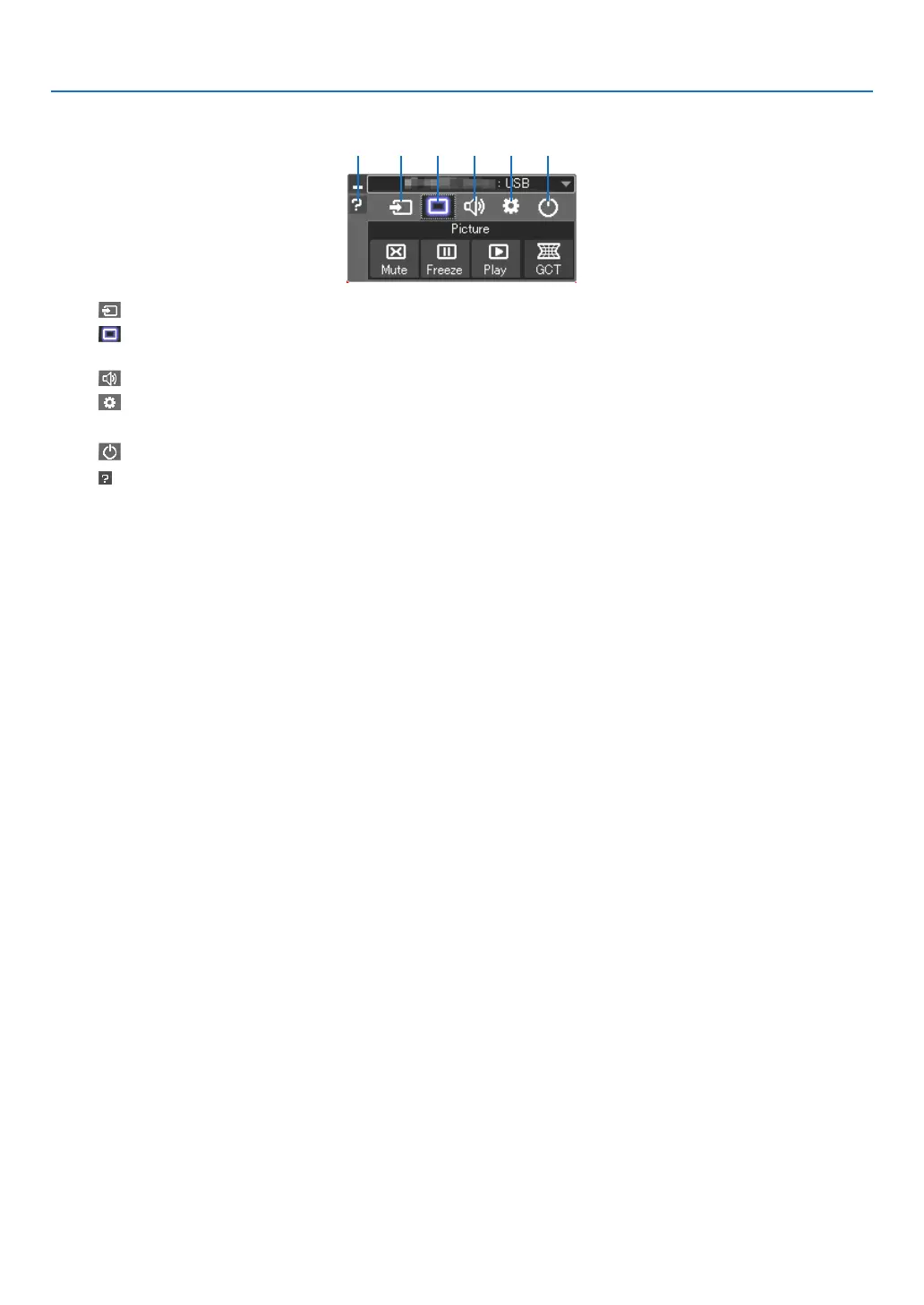(2) (Picture) ���� Turns on or off AV-MUTE (Picture mute), and turns on or off FREEZE (Freeze a picture), and Geometric