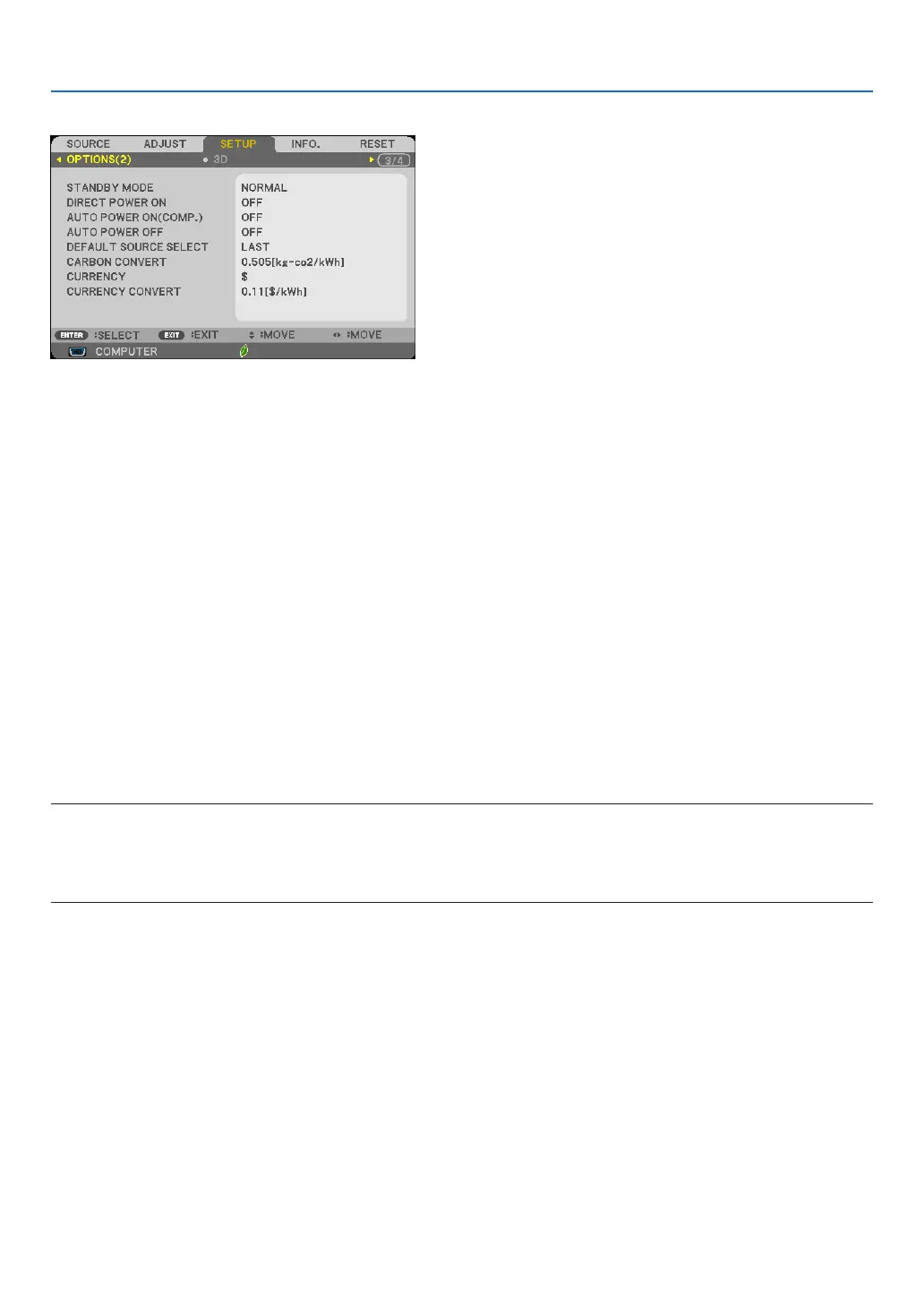 lesspowerthanthe[NETWORKSTANDBY]mode.Theprojectorispresetforthe[NORMAL]modeatthefactory.