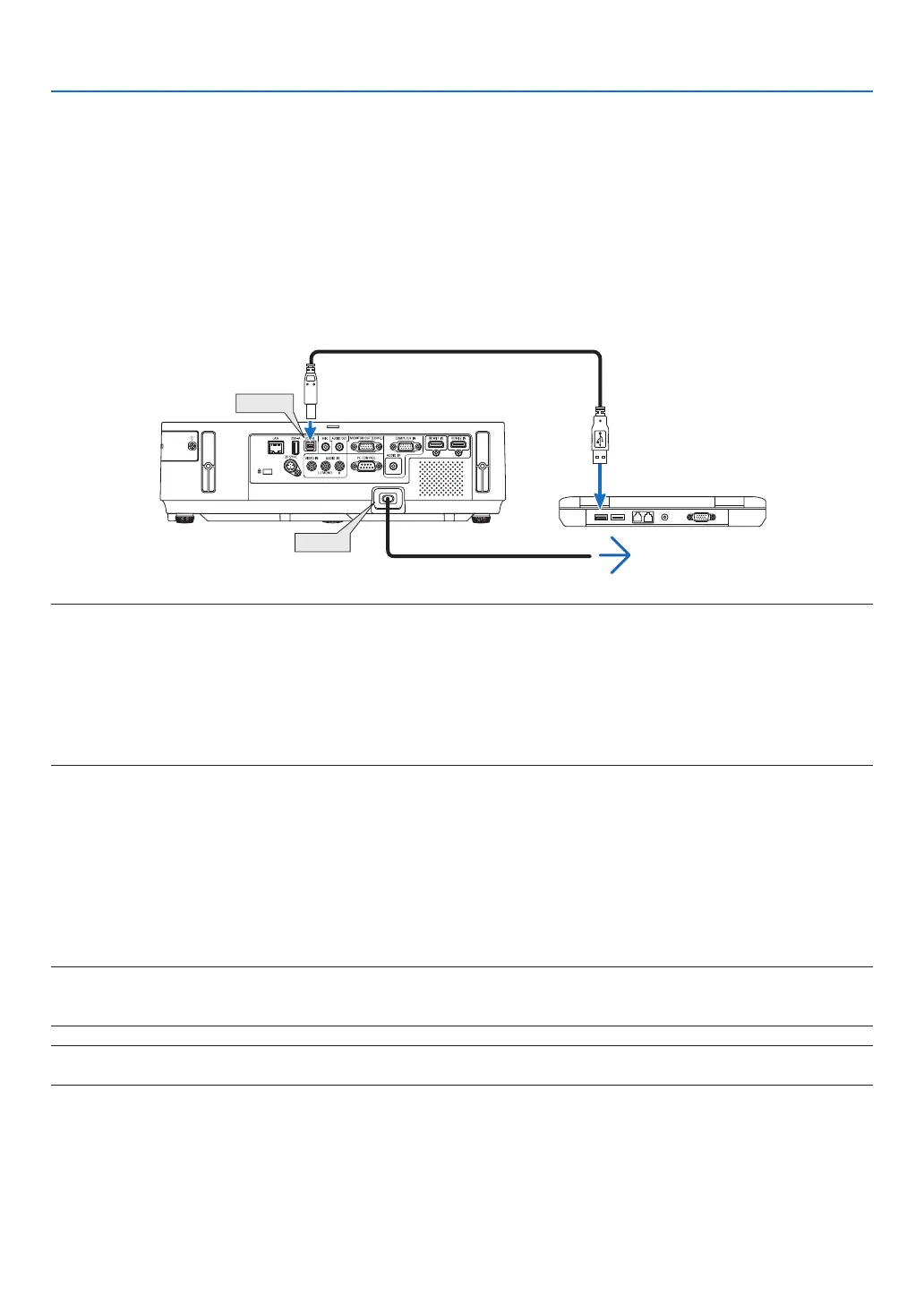 • ConnecttheprojectortothecomputerwithaUSBcableafterstartingthecomputer.Failuretodosomayfailtostartthecom-