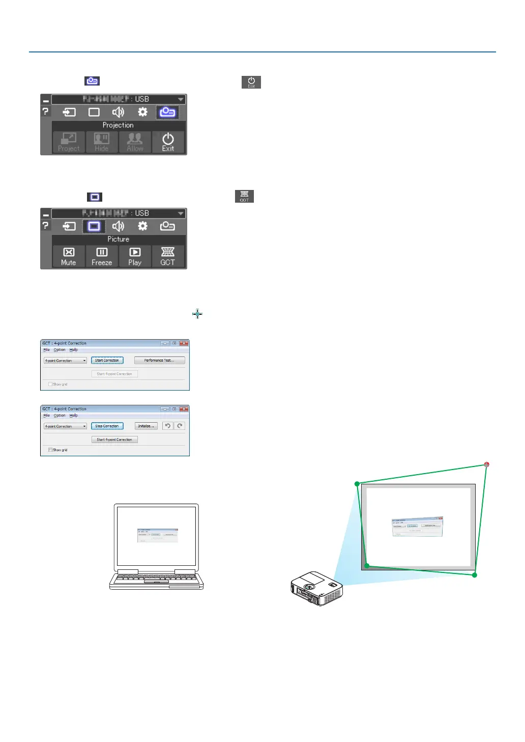 4. Clickthe“ ”(Projection)iconandthenthe“ ”(Exit)button.