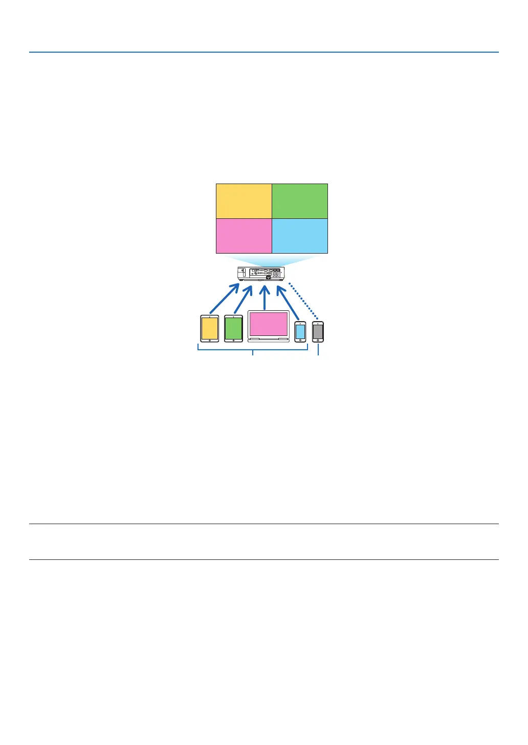 • Ifvariousterminalunitssuchasacomputer,asmartphone,andatabletareconnectedwiththeprojectorinthe