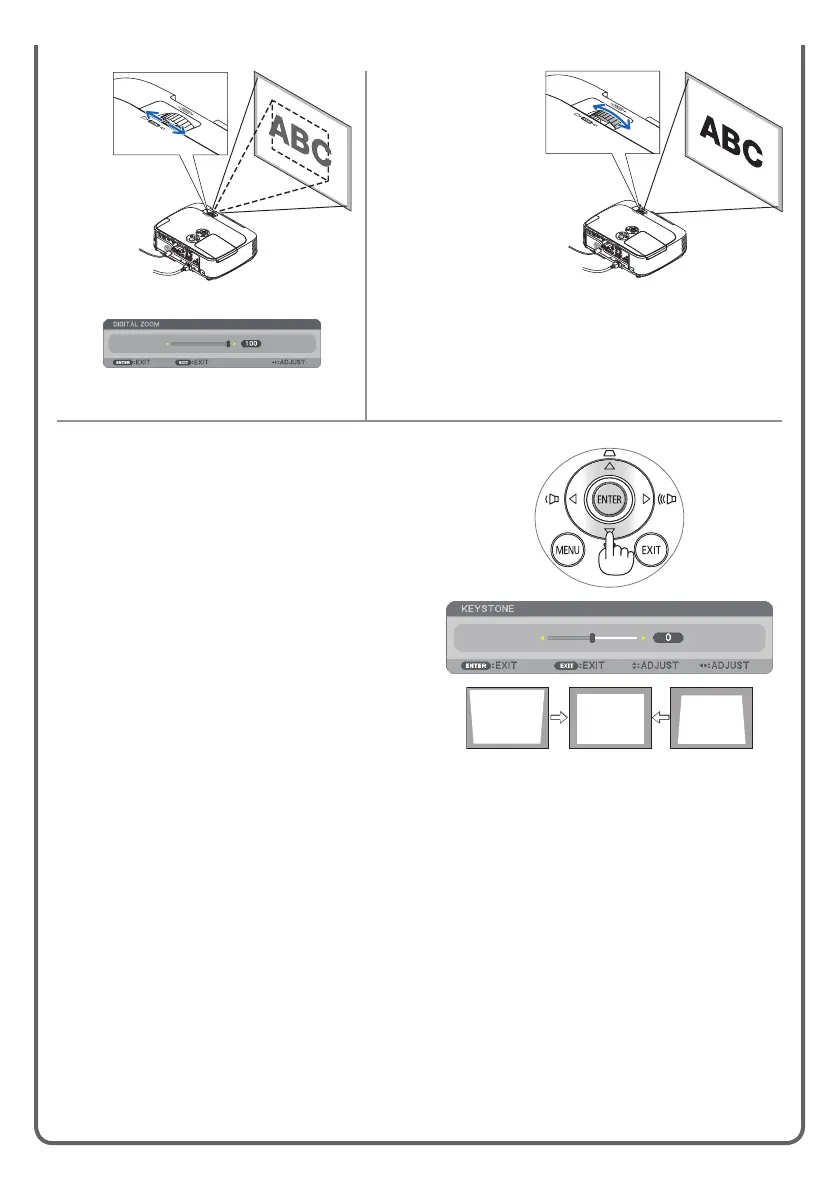 표시하지 않고 수동으로 키스톤 보정을 수행할