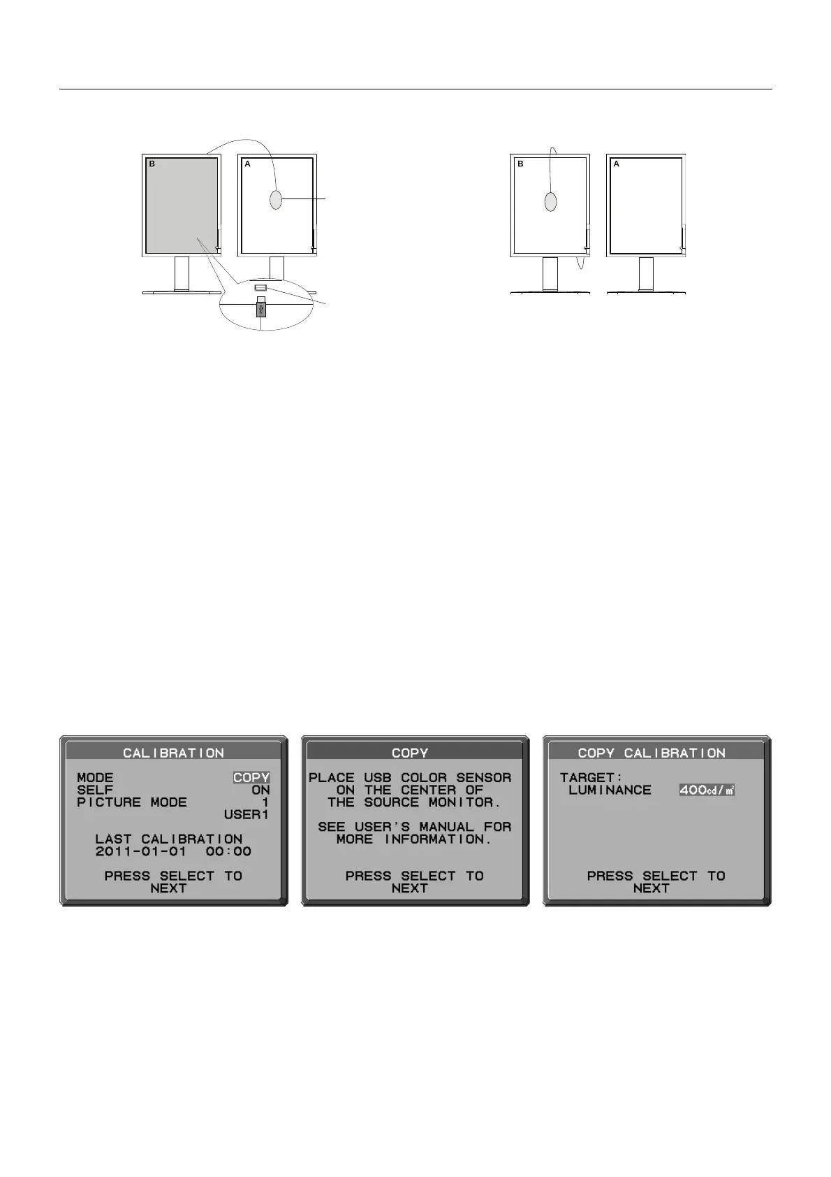 10. Once the calibration is successfully completed, the luminance of Display A and Display B should match. If ON is selected in