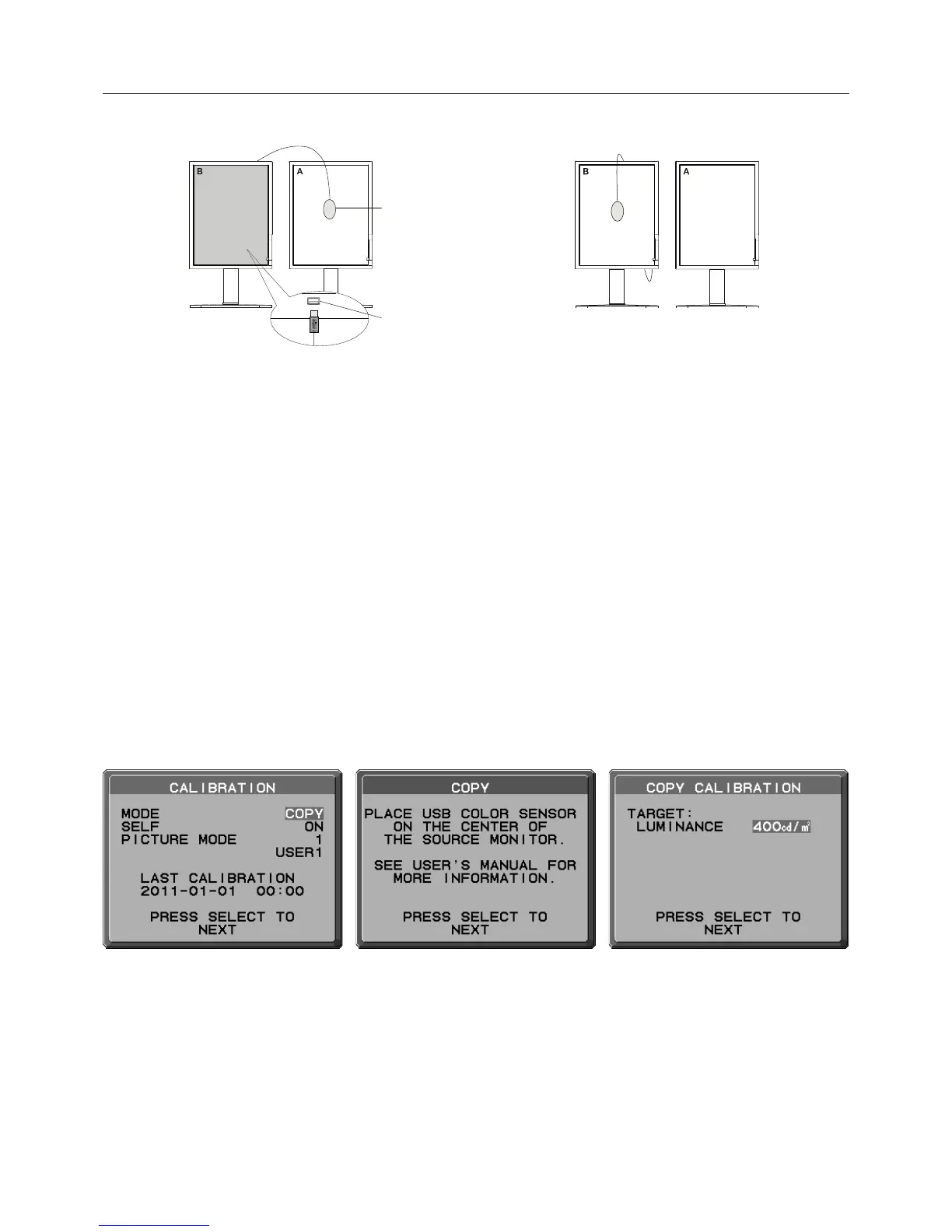 10. Once the calibration is successfully completed, the luminance of Display A and Display B should match. If ON is selected in