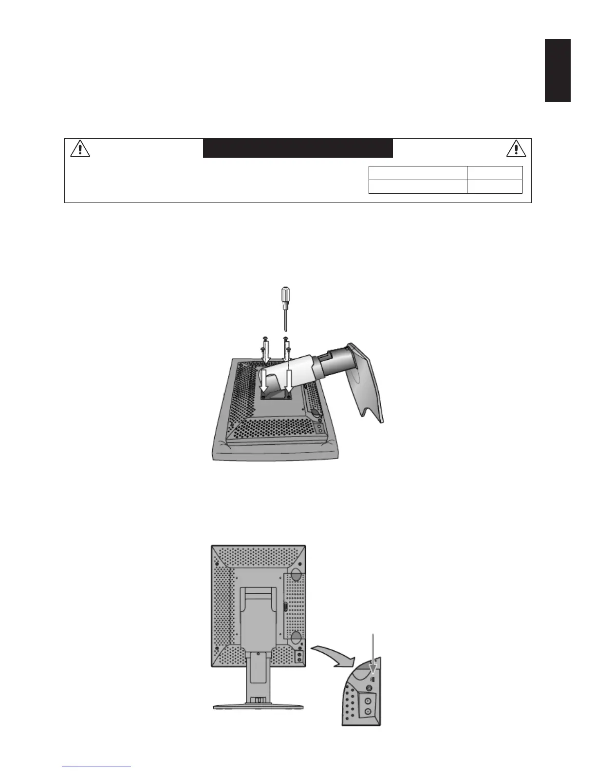 • Can bear the total weight of the LCD panel (without the stand) and the cables connected to it.