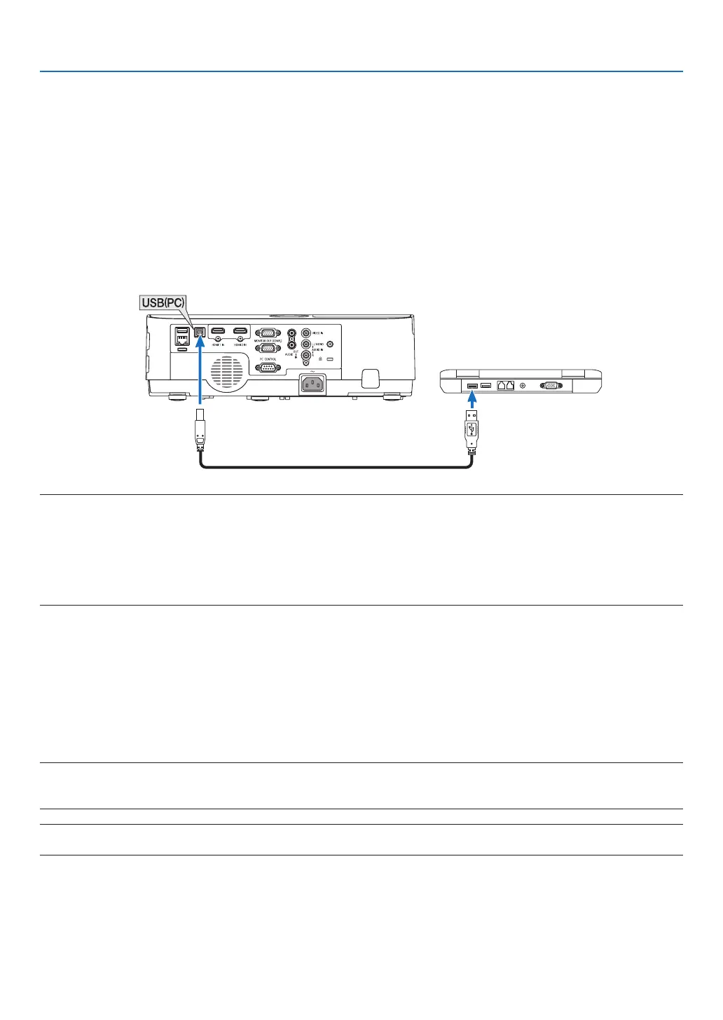 • ConnecttheprojectortothecomputerwithaUSBcableafterstartingthecomputer.Failuretodosomayfailtostartthecomputer.