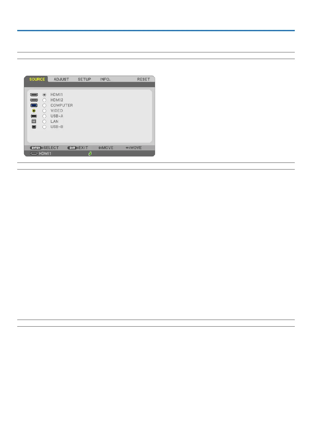 3. Press the ENTER button on the remote control or the projector cabinet to highlight the top item or the rst