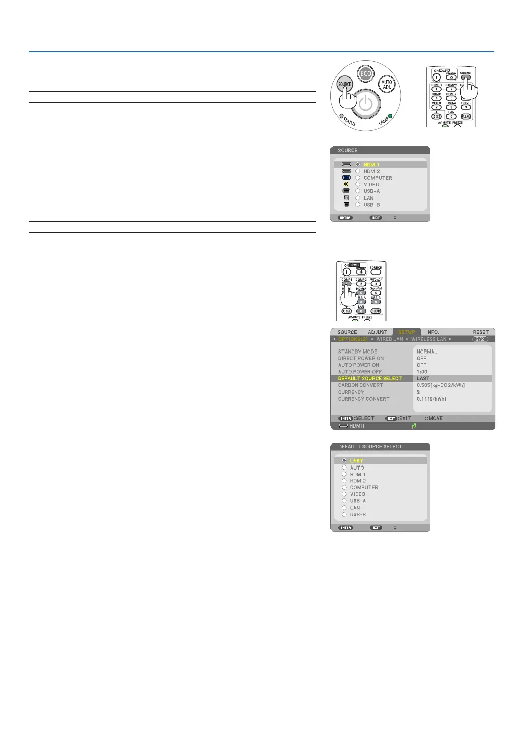 4. Press the ▼buttonvetimestoselect[DEFAULTSOURCESELECT]