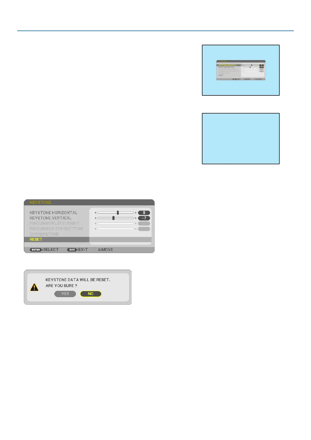 • ToperformKeystonecorrectionagain,pressthe▼ button to display