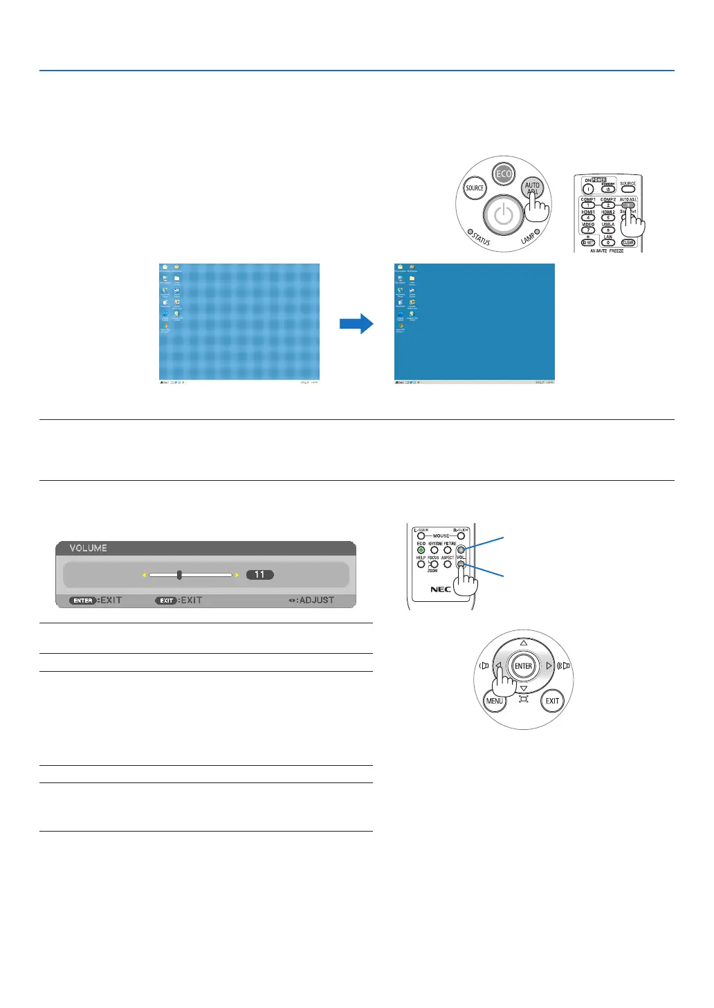 • IftheAutoAdjustoperationcannotoptimizethecomputersignal,trytoadjust[HORIZONTAL],[VERTICAL],[CLOCK],and[PHASE]