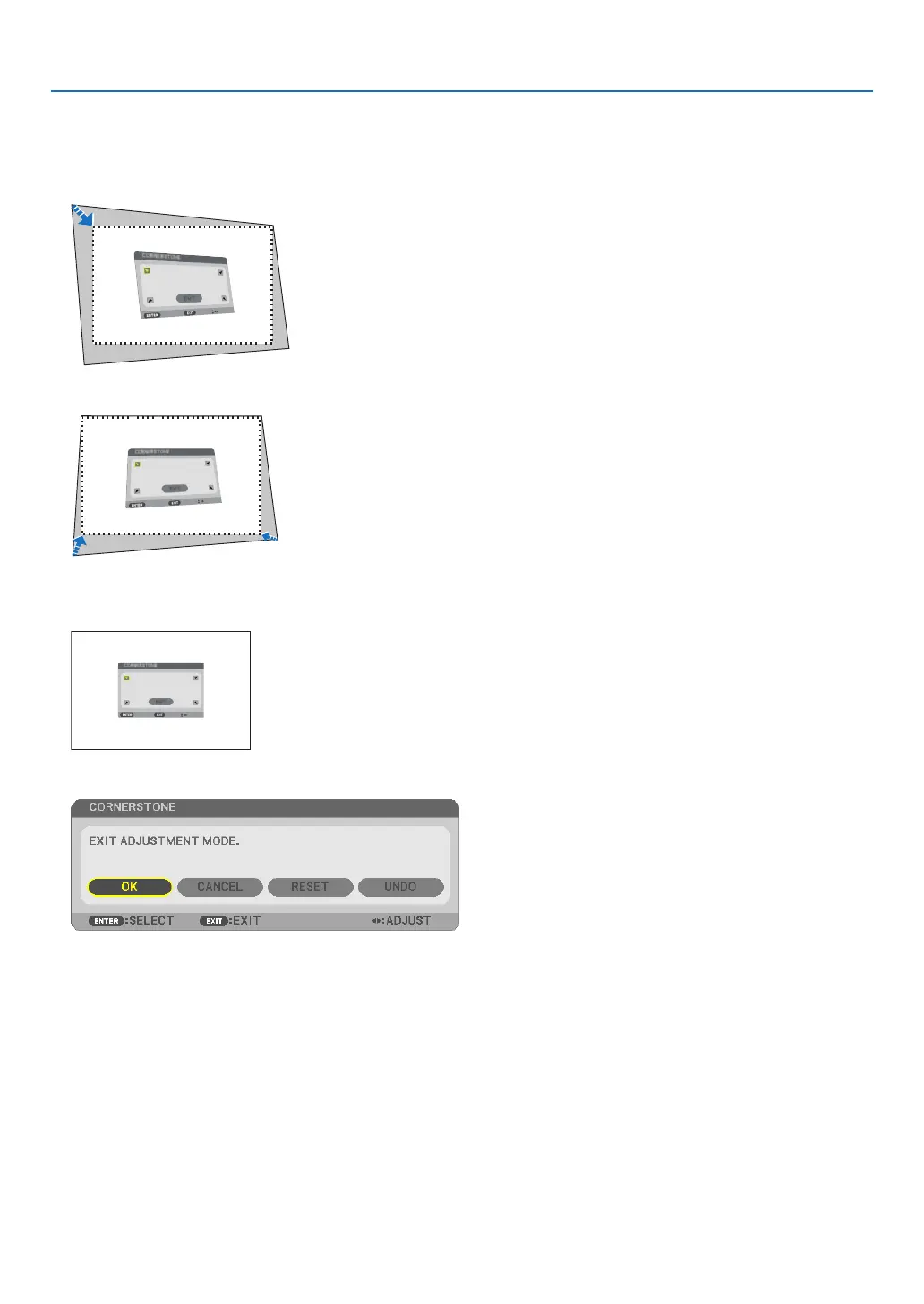 OntheCornerstoneadjustmentscreen,select[EXIT]orpresstheEXITbuttonontheremotecontrol.